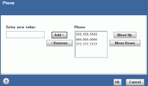 The Phone numbers listed for the Contact can be rearranged as necessary when you select Edit. Email listings are edited similarly. Each new number added however gets added to the bottom of the list, as illustrated below, so if you want the new number to be used by default, make sure to move it to the top of the list before you click OK. For example, if you want 777.777.7777 to be the default number for the contact, move it to the top of the list and then click OK.