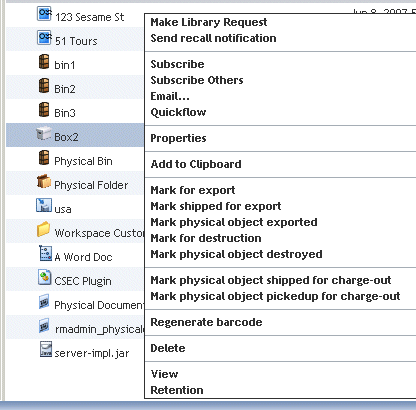 Contents in a container such as a box or physical folder are identified on the manifest for a library request once the library request is created. Creating a library request for a box, for example, will include any physical folder(s) and/or physical document(s) on the manifest if those physical objects are in the selected box. The manifest only identifies the container if no other physical objects are included in it.